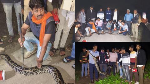 ग्राम खेडा राठौर में रात के अंधेरे में निकला अजगर, वन विभाग की टीम ने रेस्क्यू करके पकड़ा अजगर, लौगो ने माना वन विभाग का आभार