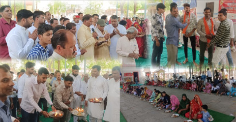 मोडी। ग्राम में जायसवाल परिवार के पारसमल जायसवाल, निर्मला जायसवाल के परिवारजनों द्वारा रामबिलास जायसवाल, श्रीमती रूकमणबाई जायसवाल के स्वर्ण सिढी आरोहन एवं प्रतीक जायसवाल, रूद्राक्ष जायसवाल के मुंडन संस्कार के भव्य आयोजन में 7 दिवसीय श्री शिव महापुराण कथा के व्यासपीठ पर विराजित मालवा मेवाड में सुप्रसिद्ध कथा वाचक सुश्री जयमाला वैष्णव दीदी के मुखारविंद से हो रही है। छटवे दिवस की कथा में सुश्री जयमाला वैष्णव दीदी ने कहा- सनातन धर्म से बढ़ा कोई धर्म नही है, गौमाता में 33 कोटि देवी, देवता निवास करते हैं इसलिए गौमाता की सेवा करना चाहिए जिससे पुण्य लाभ मिले, कथा कही पर भी हो कथा सुनना चाहिए मोक्ष की प्राप्ति होती है, जो पापी होता है उसके मन में कभी दया का भाव नहीं रहता है, इसलिए पाप करना छोडना चाहिए ताकी घर, परिवार में सुख, शांति बनी रहे, हम सनातनी भक्त हैं, राम, शिवजी के भक्त हैं जो दया के सागर हैं, बगीचे का मालिक नही बगीचा का माली बनो जीवन सार्थक होकर उद्धार होगा। कथा में भाजपा नेता नारायण सोमानी ने व्यासपीठ पर जाकर सनातनी प्रतीक चिन्ह केसरिया दुपट्टा ओढाकर स्वागत सम्मान करके आशीर्वाद लिया। कथा में एक से बढ़कर एक भजनों की शानदार प्रस्तुतियां से पांडाल भक्तिभाव से झूम उठा। महाआरती करके प्रसाद वितरित किया गया। इस मौके पर भाजपा नेता नारायण सोमानी, राहुल सोनी, कन्हैयालाल लक्षकार, लवकुश नागदा, पुष्कर नागदा, रामबिलास जायसवाल, पारसमल जायसवाल, अशोक जायसवाल, नितेश जायसवाल, सुरेश जायसवाल, नितेश जायसवाल, संतोष जायसवाल, संदीप जायसवाल, अशोक जायसवाल, रूकमणबाई जायसवाल, निर्मला जायसवाल, रिना जायसवाल, दोपद्री नागदा, रितु नागदा, निलम नागदा, कुसुम नागदा, मेघा जायसवाल, गुंजन जायसवाल, भव्या जायसवाल सहित आसपास क्षेत्रों के ग्रामवासी, परिवारजन मौजूद थे।